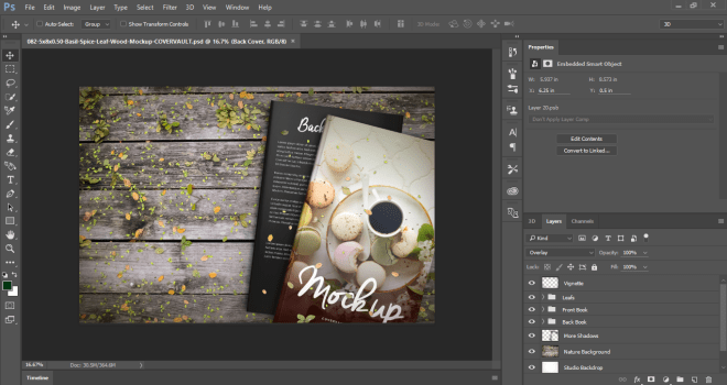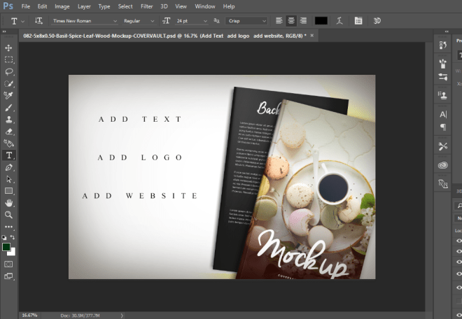 Basically, whatever you don’t want in the image can be hid. You can now use the space to add text, a logo or whatever you want. While all this is optional, remember that if you’re going to add text to a mock-up that has a lot going on, we won’t be able to read it clearly if you don’t hide or delete those layers first. Let’s look at one more: