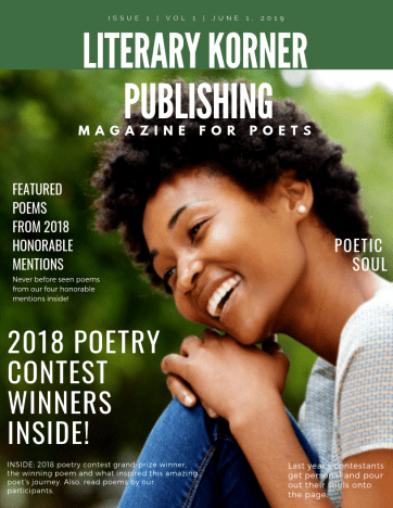 - Upon submission, poets grant Yecheilyah of Literary Korner Publishing the right to publish the poem in the Literary Korner Publishing 2020 Magazine Edition. The poets retain all rights and copyrights of their own work. (I don’t own your stuff.)