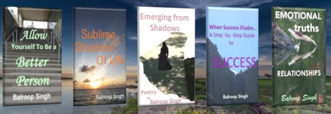 Balroop Singh, a former teacher and an educationalist always had a passion for writing. She is a poet, a creative non-fiction writer, a relaxed blogger and a doting grandma. She writes about people, emotions and relationships. Her poetry highlights the fact that happiness is not a destination but a chasm to bury agony, anguish, grief, distress and move on! No sea of solitude is so deep that it can drown us. Sometimes aspirations are trampled upon, the boulders of exploitation and discrimination may block your path but those who tread on undeterred are always successful.