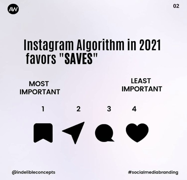 Instagram, like every other app, is constantly changing. In 2021, the platform’s algorithms favor saves and shares over comments and likes. Below is an image someone posted that sums this up perfectly.