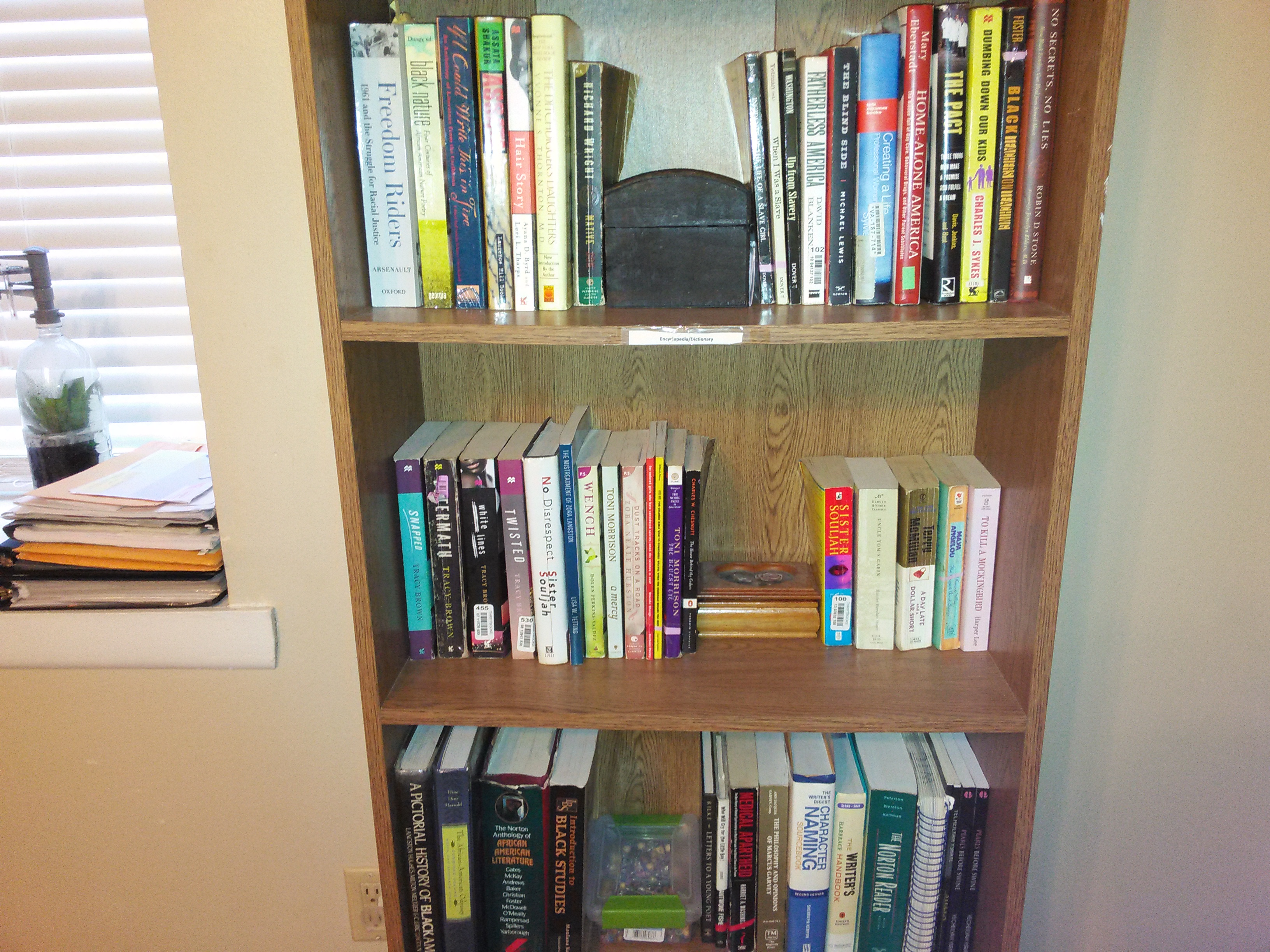 I try, really I do, but I can’t seem to get into a good novel by staring at a computer screen. I’ve done it, but it just doesn’t compare to the real thing. There is something much more intimate and provoking about holding a book in my hands; feeling its cover, running my fingers across the pages, crisp and sharp; the smell of a fresh book that has never been opened, and the potency of the ink when it jumps off the pages; that new smell from brand new books, like cradling a new born in the crook of your arms. So precious and delicate that you almost don’t want to open it. Don’t want to destroy the perfect foundations by bending it’s shiny flaps or causing a crease. In your lap is the weight of your favorite coffee cup, the modest light of the lamp, and a world waiting for you to enter it. To touch and feel the tangibility of book bindings is to go on a creative high of possibilities. All the way down to when you close a book after coming home from the journey and daydream about the revelations and alternate endings. You can end an eBook but you can’t close it. That big red x in the corner won’t do it justice either. I can’t breathe in deep and close my eyes while holding an eBook in my hands. I can’t stare at the front cover as if there’s more to come or fold the pages over. Highlighting isn’t as fun either. Perhaps the best thing about hard-copies is that these books are much more prone to immortality; they will go back for years and years to come. I smile sometimes at the books of my youth that are still found hanging around, too naïve to be read again with the same zeal but too precious to do away with. The satisfied glory of having been read, watch your favorite collection stand and shine beautifully against the backdrop of the book shelf, a time machine right there in your bedroom.