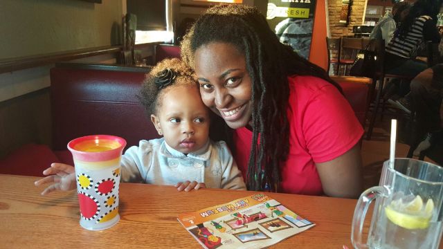 This picture was taken last year at a restaurant in Atlanta. I had just finished a book signing for the release of Book 3 in The Stella Trilogy and was to act in the stage-play Blakk Amerika: From Prophets to Pimps the next day. Hungry, me and two sisters decided to sneak off from the group and grab a bite. This is me posing with the daughter of one of the sisters with me.