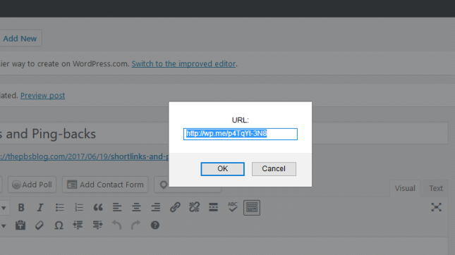 However, it is not a short link. If anyone knows how to get the shortlink while in the new editor, it is appreciated!