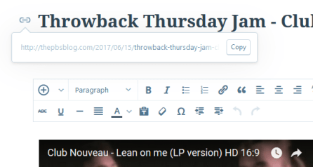 Note: It’s easier in the old editor. I have found that if you click on the link icon next to the post headline in the new editor you can copy the link. As seen here: