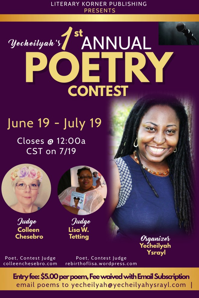 Poet Spotlight: https://colleenchesebro.com/2017/07/31/yecheilyahs-first-poetry-contest-announcing-the-runner-up-winner/